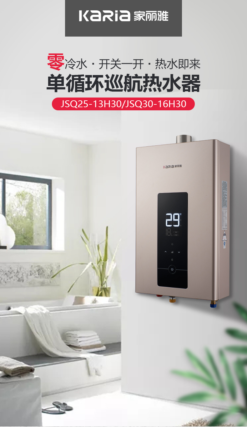 1:輕奢金頂涂板殼體,開關一開,熱水即來,單循環巡航