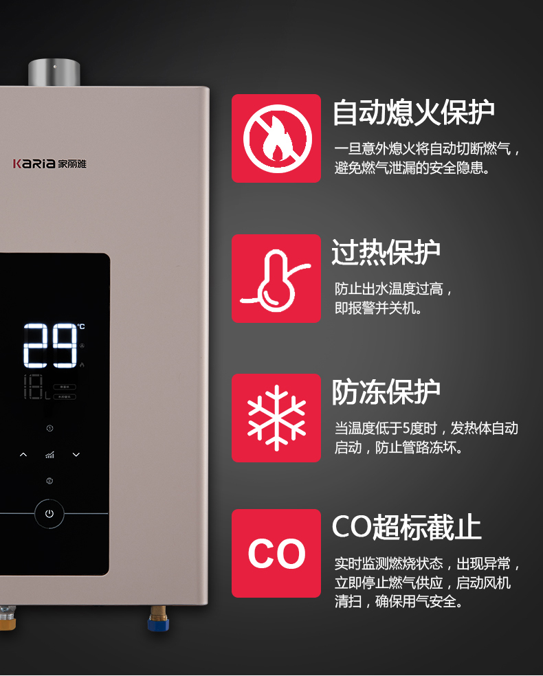 2:10分鐘內自動加熱保護,帶限流裝置,穩定水壓,三分段燃燒